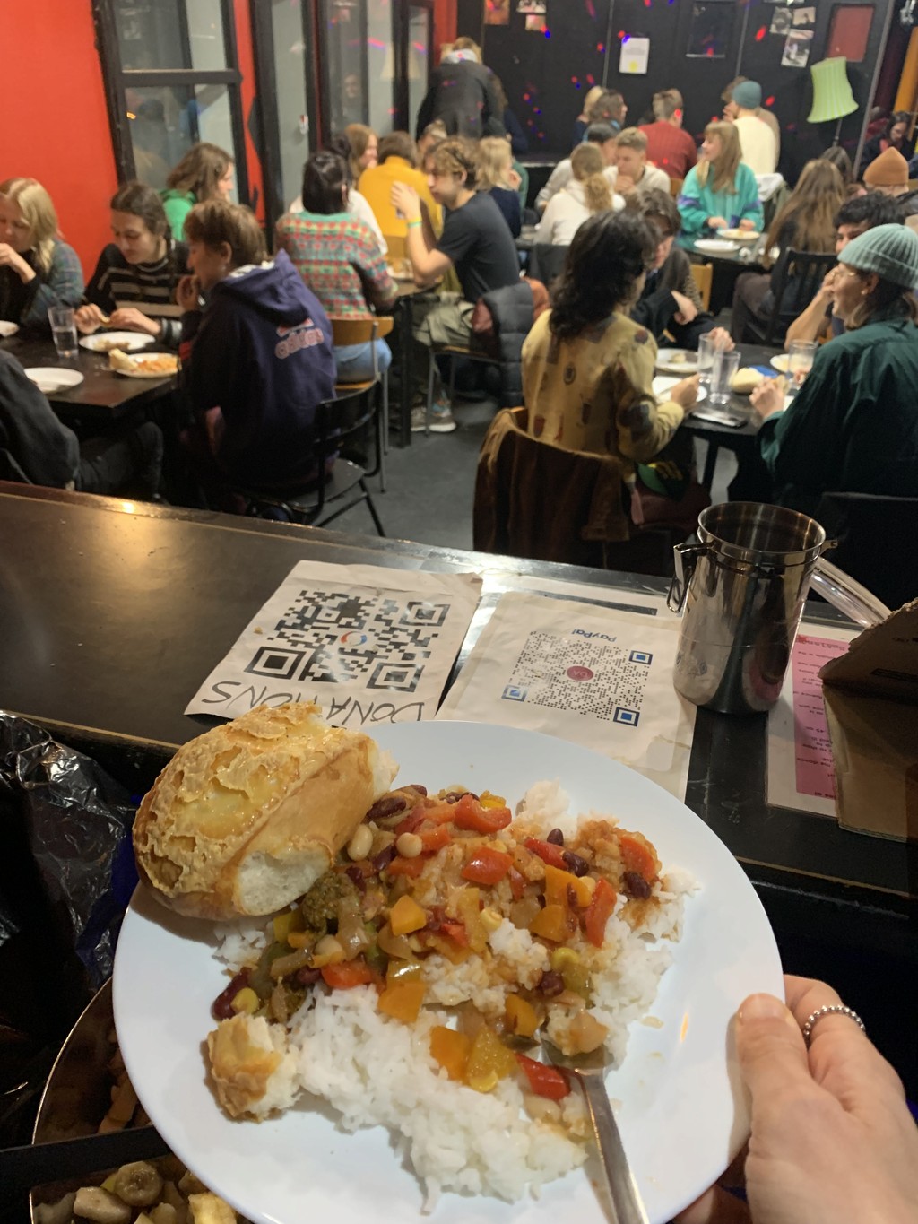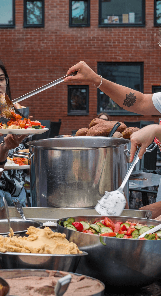 Many of our ingredients are donated and dumpster dived (retrieving discarded food from the bins of supermarkets). We meticulously sort through these items, ensuring they are safe for consumption before creatively incorporating them into our flavourful dishes. We want to show how you can cook with little budget for a big community while saving food that would otherwise have been wasted.